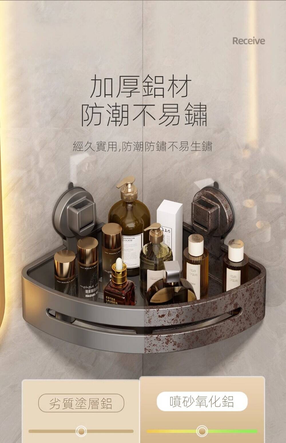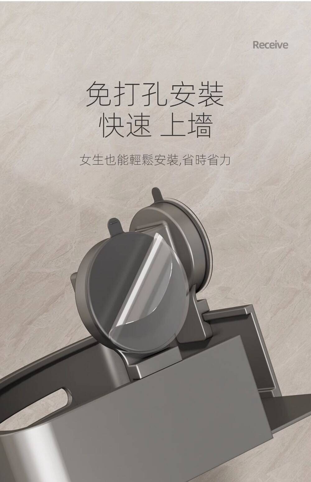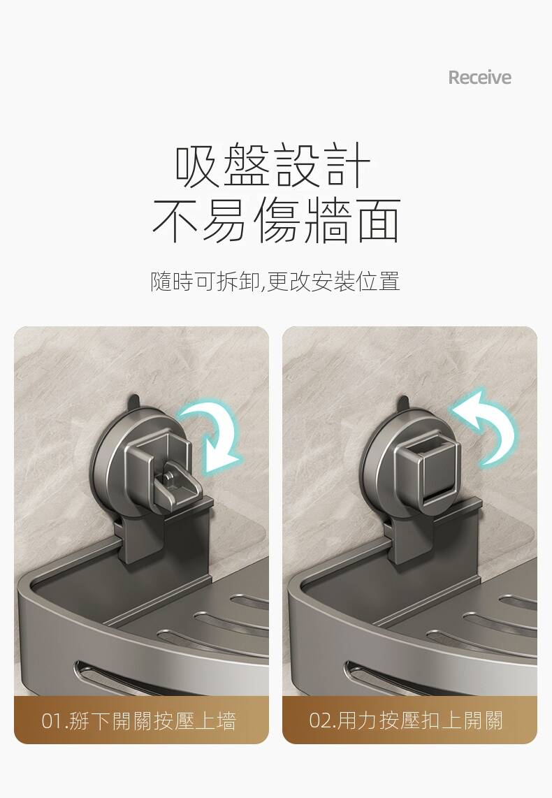 15分鐘前自帶吸盤,可隨時移動重復使用的置物架 免打孔廚房浴室衛生間三角置物架多用途壁掛收納架毛巾架 - 【超夯下殺】買一送二,共三入組 NT$999