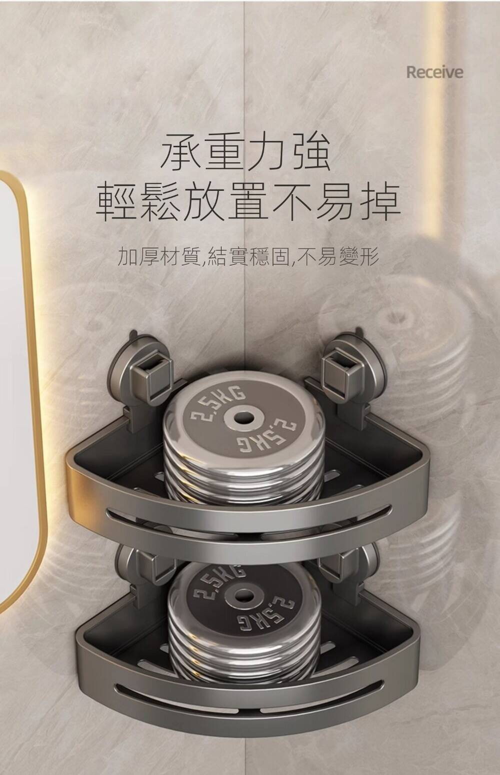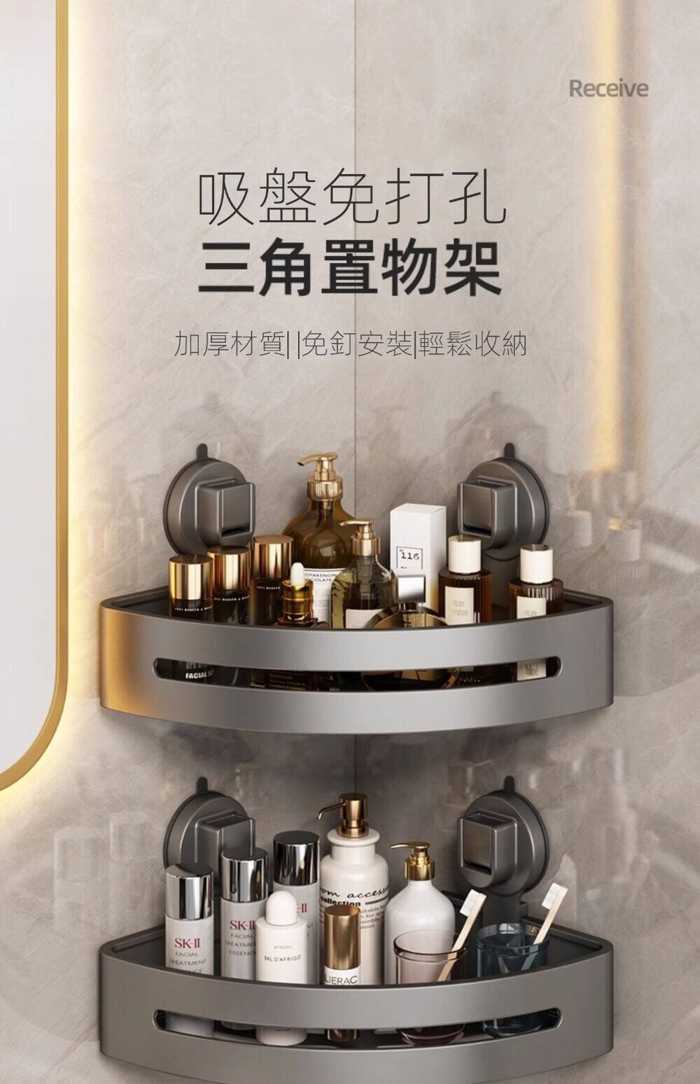 半小時前自帶吸盤,可隨時移動重復使用的置物架 免打孔廚房浴室衛生間三角置物架多用途壁掛收納架毛巾架 - 【超夯下殺】買一送二,共三入組 NT$999