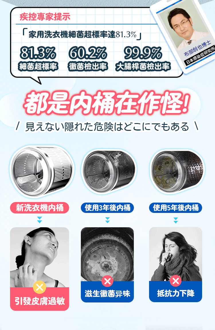 7分鐘前還洗衣機一個清新 ,一鍵免浸泡 洗衣機抑菌清潔液 淡淡清香_你值得擁有 - 【超值特惠】5入組 NT$1190