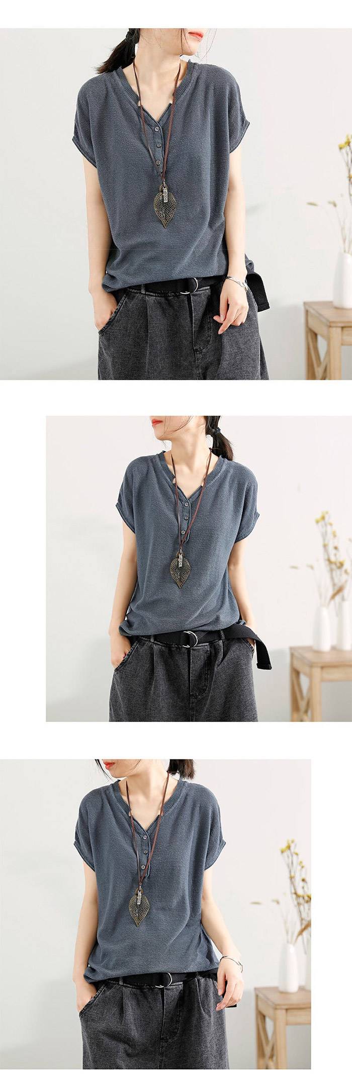 15分鐘前【夏季熱銷款】冰絲薄款V領短袖【超薄透氣】【舒適百搭】【促銷活動還在進行中哦!】 - 【夏季熱銷款】冰絲薄款V領短袖